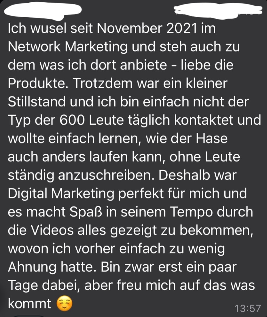 Nein! Bei diesem Kurs handelt es sich nicht um ein Network-Marketing-Unternehmen. Kein Teambuilding, kein Multi-Level! Du verkaufst einen digitalen Kurs mit 100 % Gewinn.