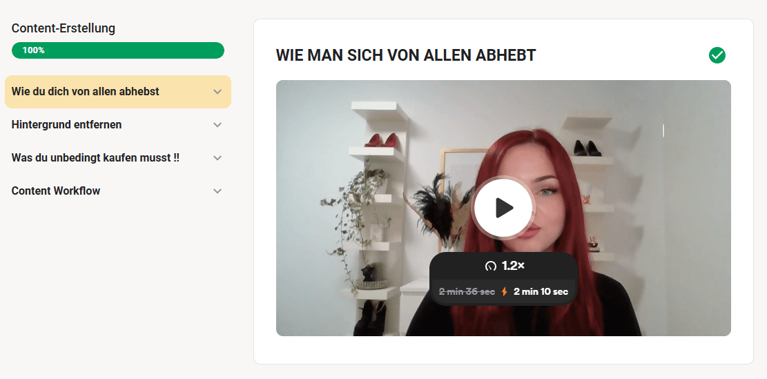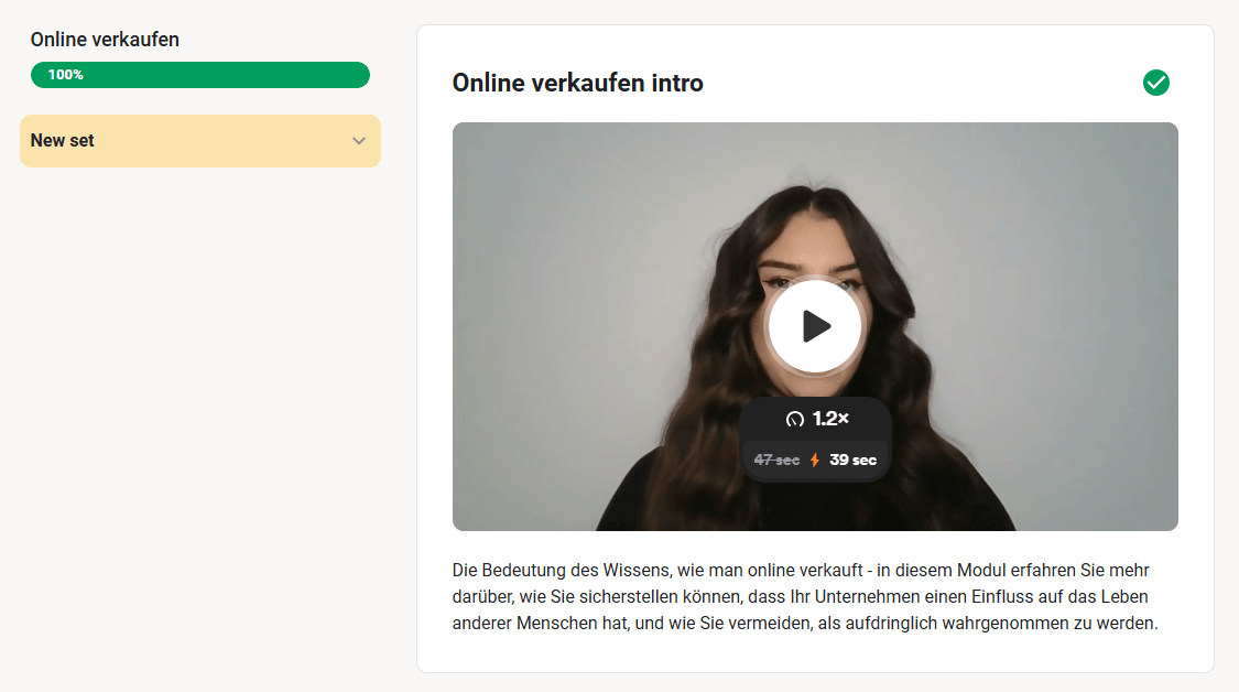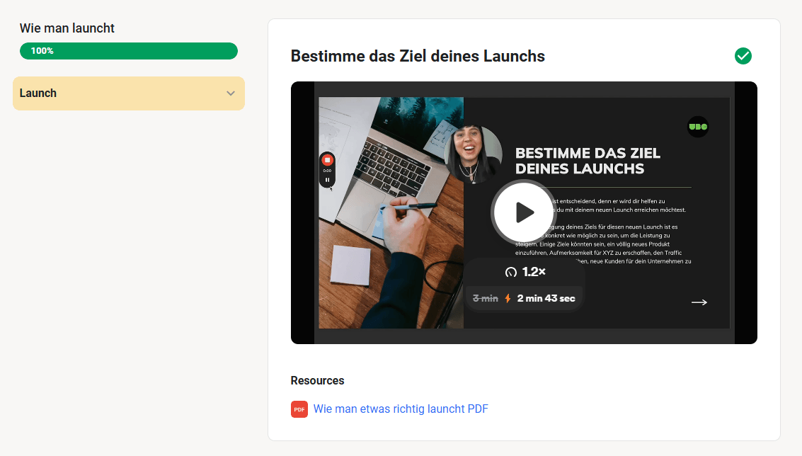 Keine versteckten Kosten und keine Zusatzverkäufe. Du zahlst eine einmalige Kursgebühr, wodurch du den Kurs vollständig erwirbst.