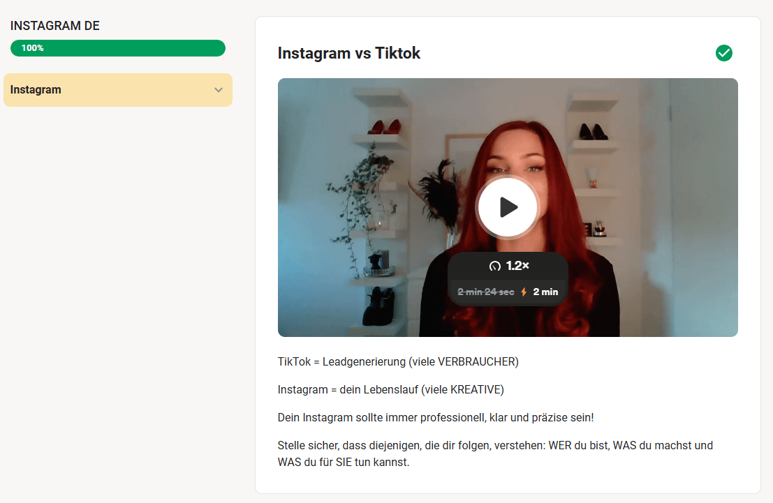 Man sagt, Instagram sei der neue Lebenslauf, zumindest für Online-Unternehmen! Also lass uns deinen Lebenslauf auf Erfolgskurs bringen. Dieses Modul enthält über 16 Videos, die dir zeigen, wie du Reels, deine Biografie, Highlights, Engagement-Strategien und vieles mehr meisterst!