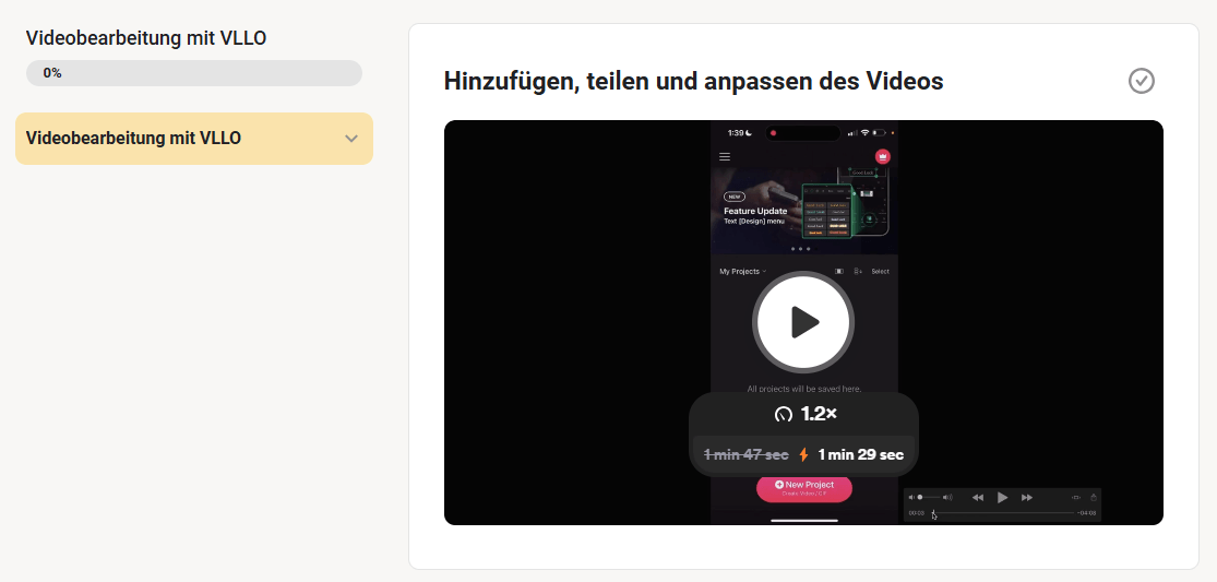 Schritt-für-Schritt-Anleitungen und Tipps zum Bearbeiten von Videomaterial mit der VLLO-App.